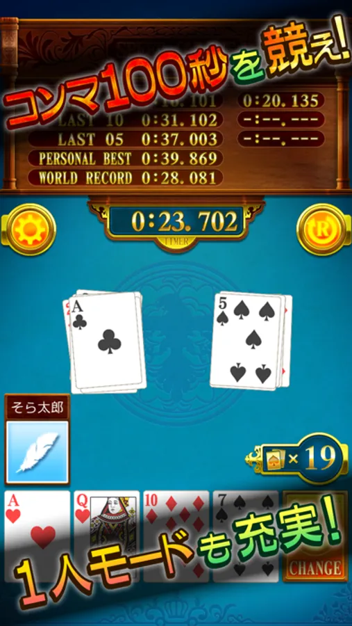 ・チェンジボタンで手札をいつでも変更可能(チェンジシステム)。出せるカードがないときのストレスを解消するとともに、出せない時に「カードを変更するか」それとも「出せるまで待つか」といった駆け引きを楽しむことができます!