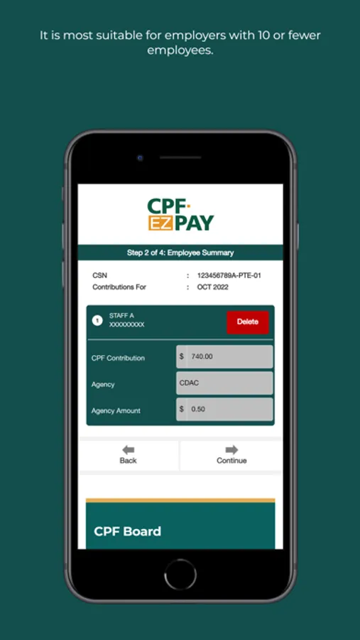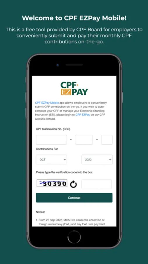 CPF EZPay Mobile is a free tool provided by CPF Board for employers to conveniently submit their monthly CPF contributions on-the-go. It is optimised for mobile devices to help employers complete their submissions easily and quickly. It is most suitable for employers with 10 or fewer employees.