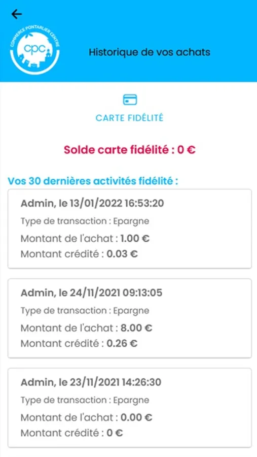 * Historique des achats: Vous avez la possibilité de revoir les dernières transactions effectuées avec la carte, afin de suivre au plus près vos achats effectués avec la carte.