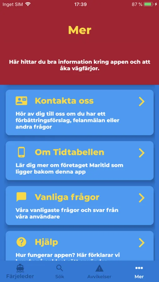 Vi hjälper dig att på ett modernt och lättillgängligt sätt se aktuell tidtabell för alla Färjerederiets färjeleder. Du ser lätt nästa schemalagda avgång, även om du inte är uppkopplad mot Internet. Miljövänligt sätt att läsa tidtabellen på och utan risk för tokkörningar med hjälp av enkel planering.
