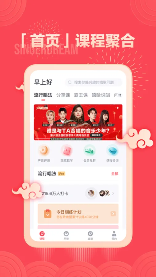 还有「训练计划」「声音评测」「问答」「直播」等更多好玩的功能等你发现!