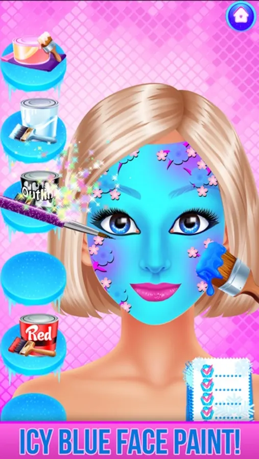 Level 1: The frosty spa! Put on face-mask, wash off the old design and more!