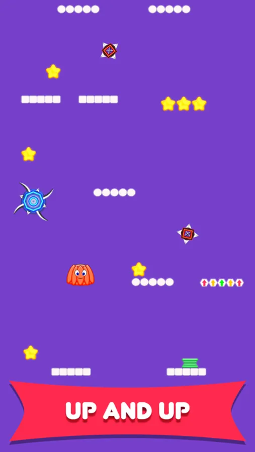 Journey up a geometry world, perpetually jumping from one platform to the next, picking up star packs, avoiding enemies, pipes and try to survive as long as you can. Collect stars, open new units, achieve better score and have a lot of fun.