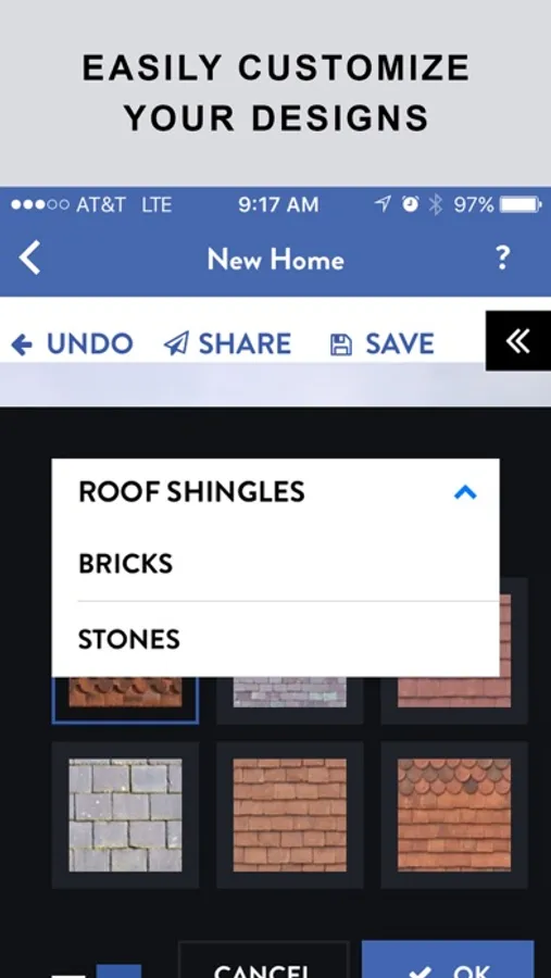 The BluePrintz app lets you try out new paint and even new siding materials on your hose using our extensive library of color, brick, stone, and vinyl swatches. Do you want feedback before committing to a final design? With BluePrintz, sending your designs to family and friends is a snap. BluePrintz helps you visualize your dream home so you can build it with confidence.