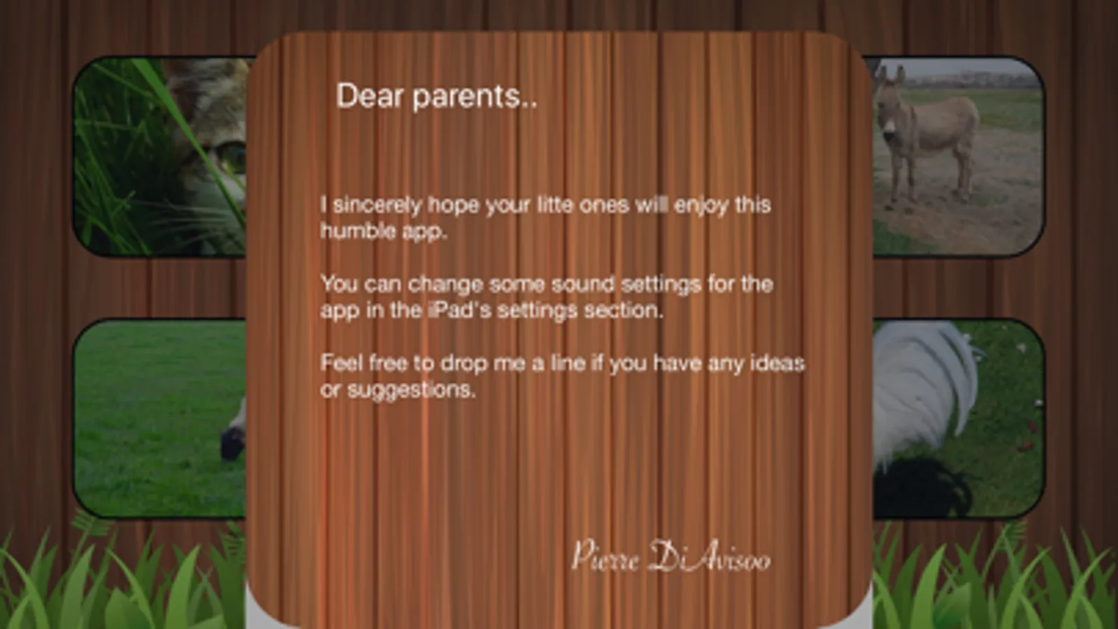 We tried to find a good app that had animal pictures with animal sounds (farm animals). The apps I've been testing for my daughter are all either too complicated, filled with advertisements and in-app purchases or simply just not visually appealing.. so I made this custom app for her that I'm hoping you and your little ones will enjoy as well.