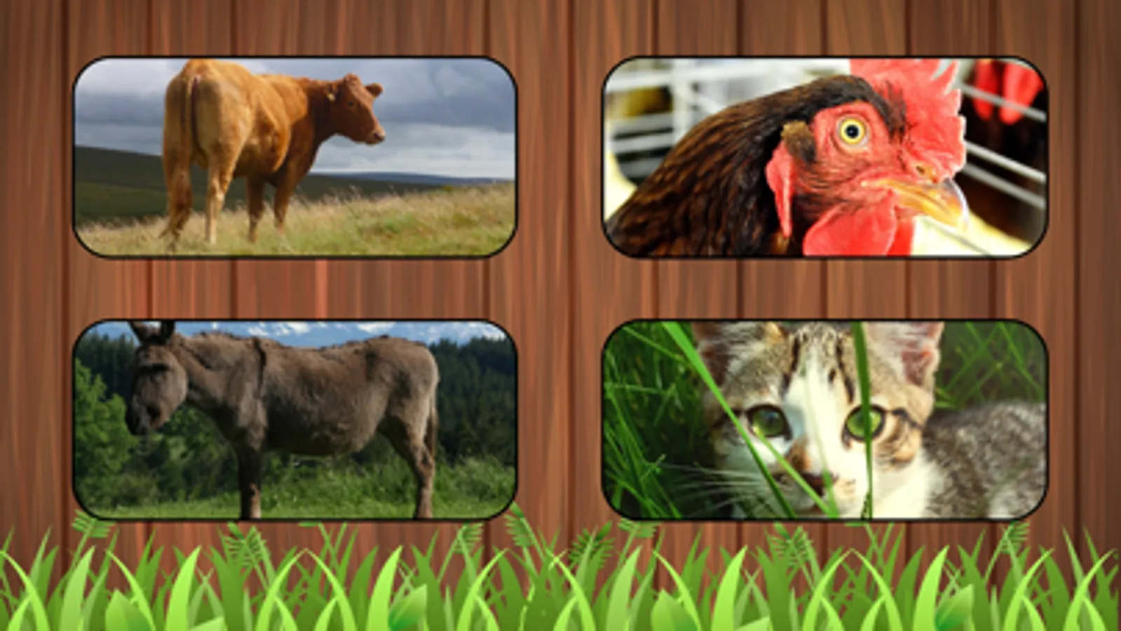 Listen to the animal sound and name played once, then tap on the picture of that animal. Tapping on the correct animal will make the picture bigger and show emit stars indicating it's the correct one.