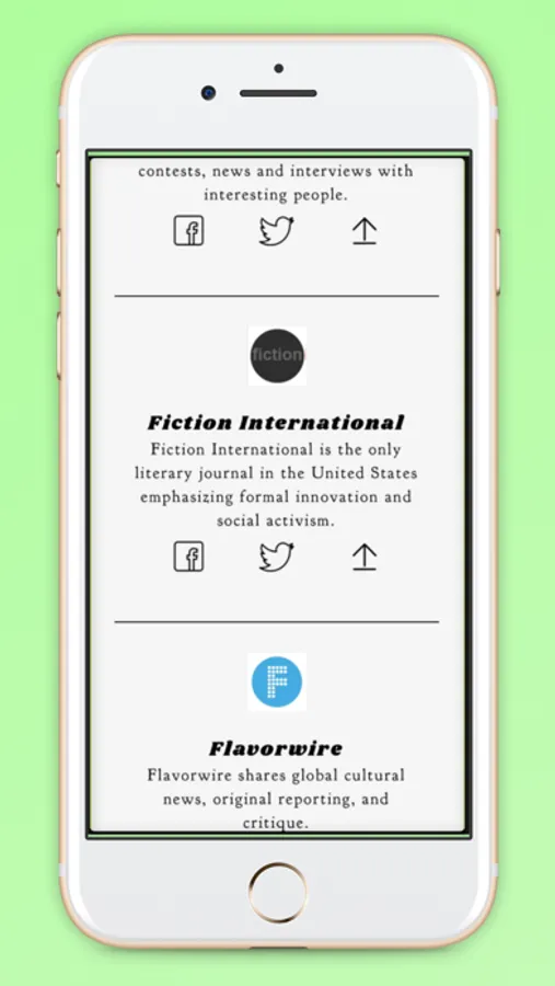 Not only do we provide and endless stream of content, but we also allow our users to connect with these publications through their submission pages and social media. Our 'discover' page allows you to find out when the next big deadline is coming, and we can redirect you to exactly where you need to upload your work.