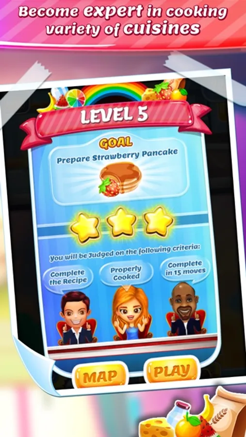Sally’s Master Chef Story is the story of a young girl with the dream of becoming the biggest Chef celebrity by winning the ultimate contest. Lead her in her journey from a small town to the biggest city in the world for becoming the Master Chef. Master lots of scrumptious recipes along the way, tackle large parties by delivering bulk catering orders and rescue hidden recipes, all in one. Sprinkled with a deliciously sweet twist like a candy, this match-3 game is unique, fun, challenging and rewarding.