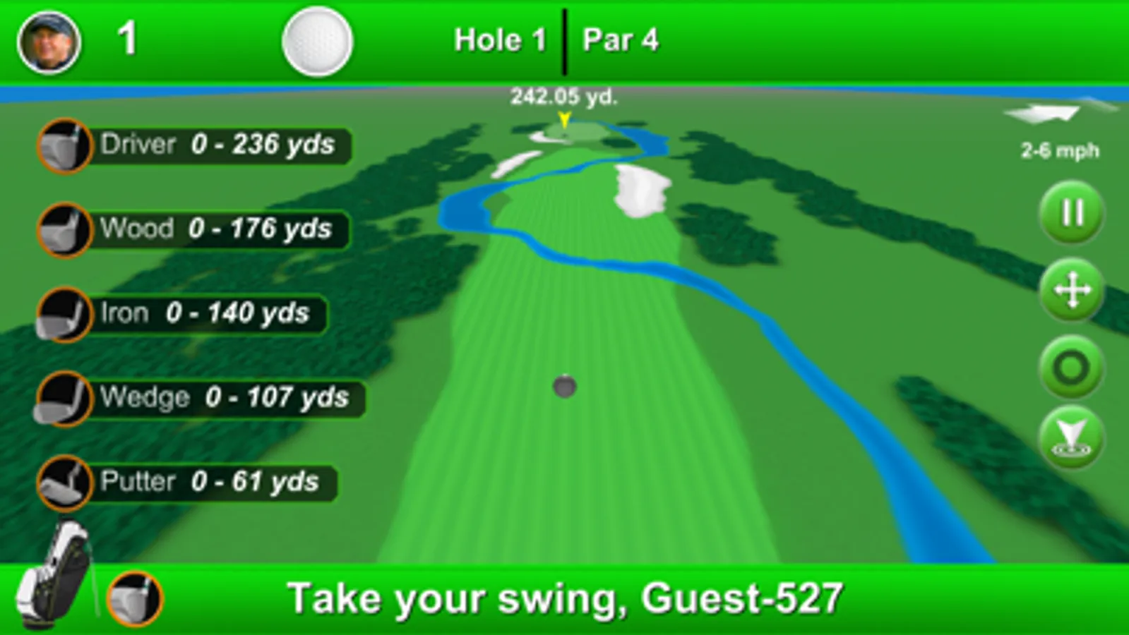 Tap and hold down your finger on the ball, pulling back to set the amount of power to use, and then lifting up your finger for the shot. If the slider lands within range of the target, you’ve made a successful shot! Be careful of environmental effects and changes through the course of the game. If you get stuck in a sand trap or in the trees, you have to flick the ball to get out. Wind can change the course of your shot! And depending on who you are playing as you may be better at one club than the other.