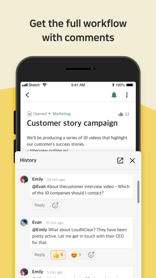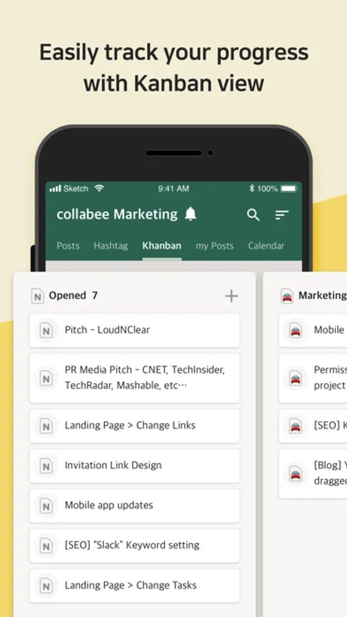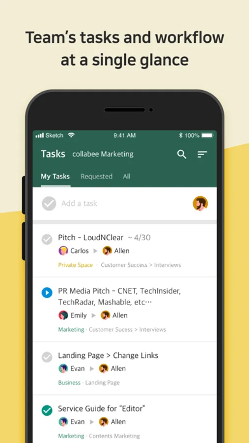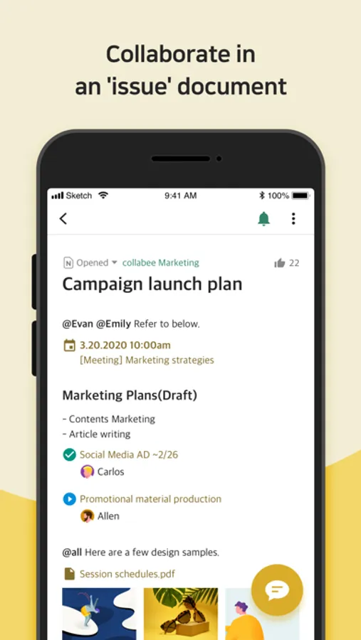 Assign tasks, share files and feedbacks, and communicate with your team in just one page. With Collabee, you know your how far your project has progressed and how active your team is being involved. You can co-author and co-edit an issue, a collaborative document, and mention your coworkers or share tasks, decisions and files. Each step your team takes to get works done will be shown in the comment section, allowing anyone to follow up with the workflow at a glance.