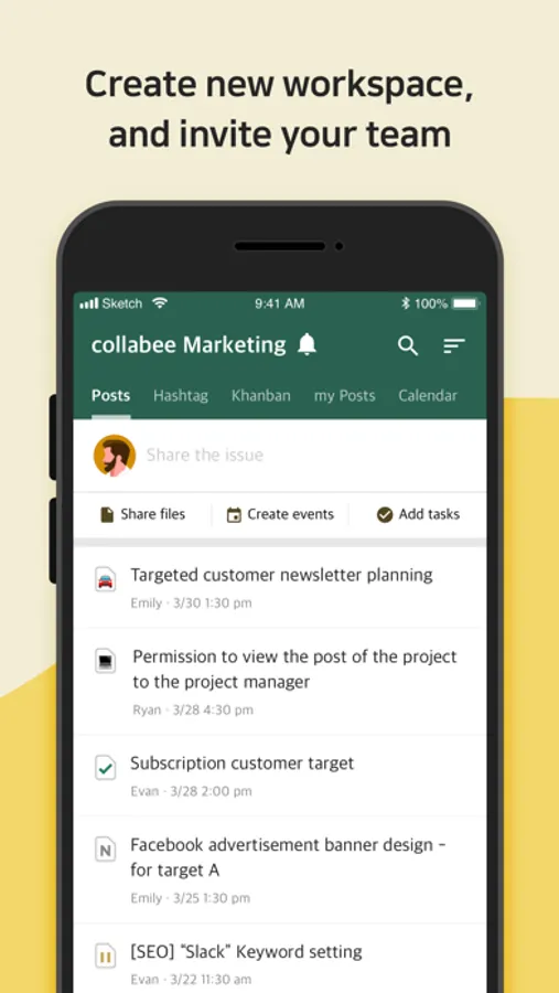 collabee is a team collaboration software that lets your team communicate, manage tasks and events, and share files, all in one page.