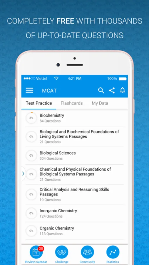 MCAT includes 3000 Flashcards and Practice Questions which cover all aspects of the Medical College Admission Test exam: