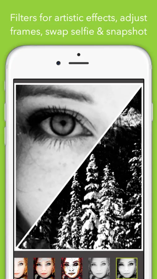 FlipPic lets you take both a selfie and a snapshot with a single touch, next apply custom layouts and artistic filters, and then save or share with friends.