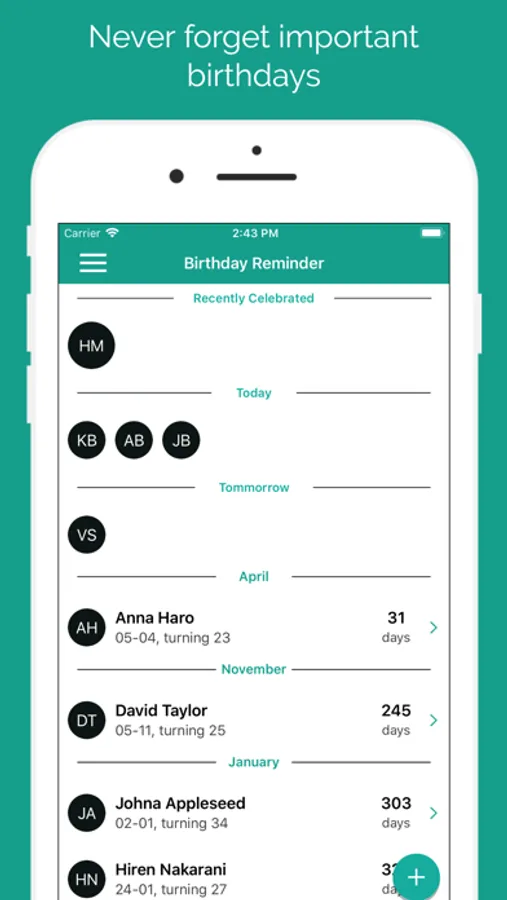 - Provide easy steps to add new birthday reminder