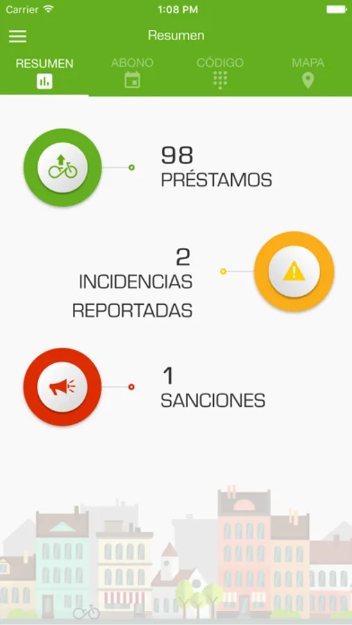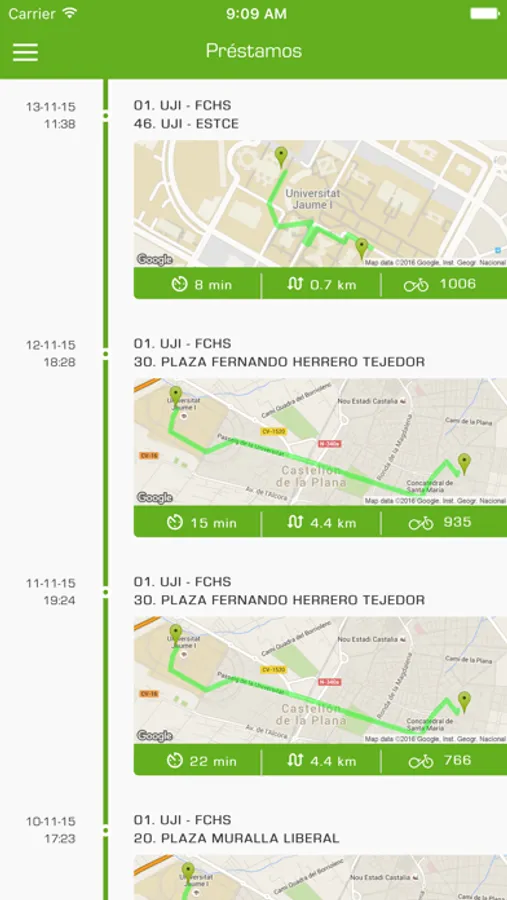 • Indicador de tiempo, distancia y bicicleta utilizada en cada préstamo realizado.