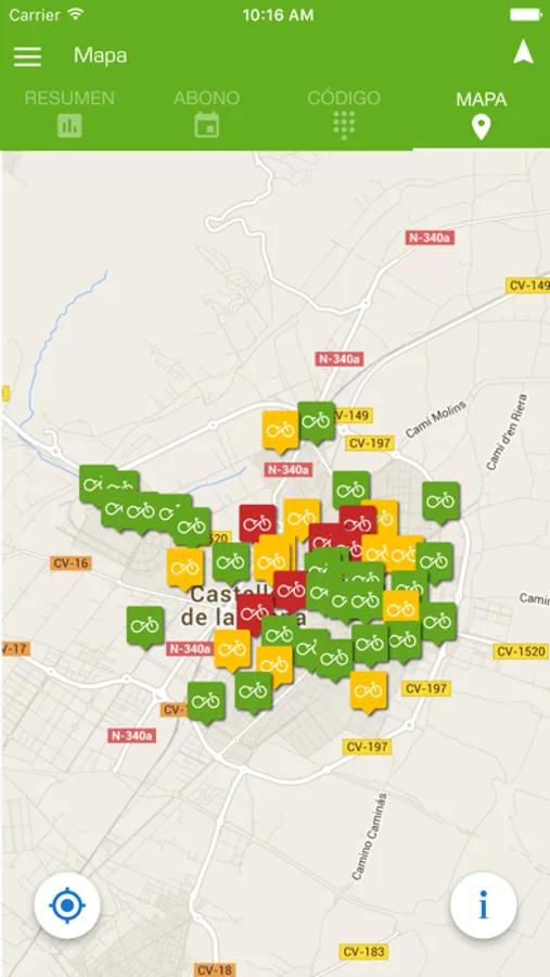 • Indicadores de bicicletas restantes en cada bancada.