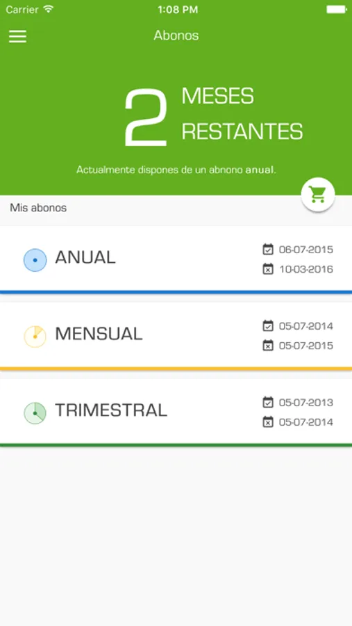 • Lista los abonos adquiridos previamente.