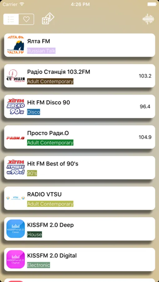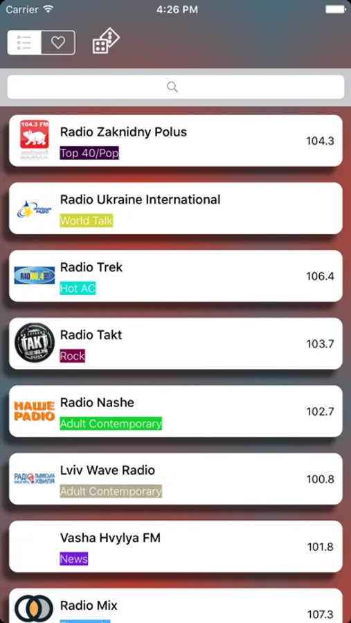Вся Україна радіо, доступних в цьому додатку.