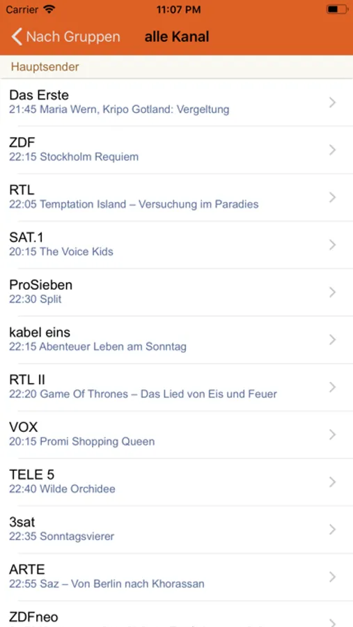 Sie können die Programmliste eines jeden Kanals für nächsten 3 Tage zu sehen .