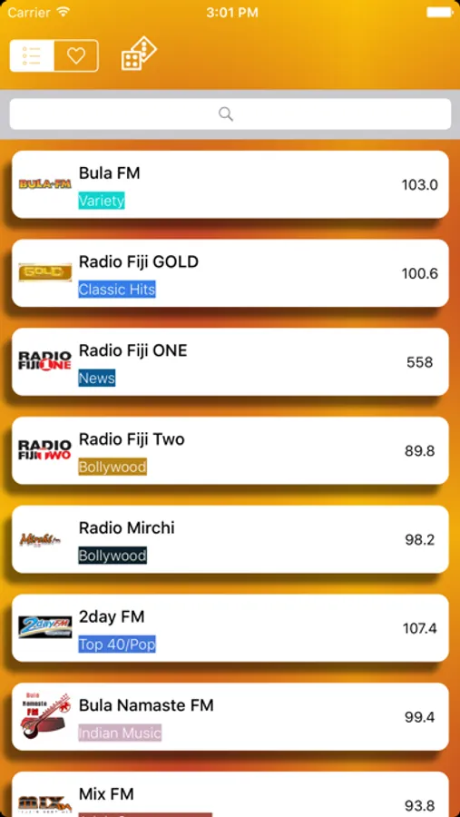 A streaming radio app that streams most common radio stations in the Fiji Islands. Additional Indo-Fijian cultural folk music stations. Designed for iOS 7