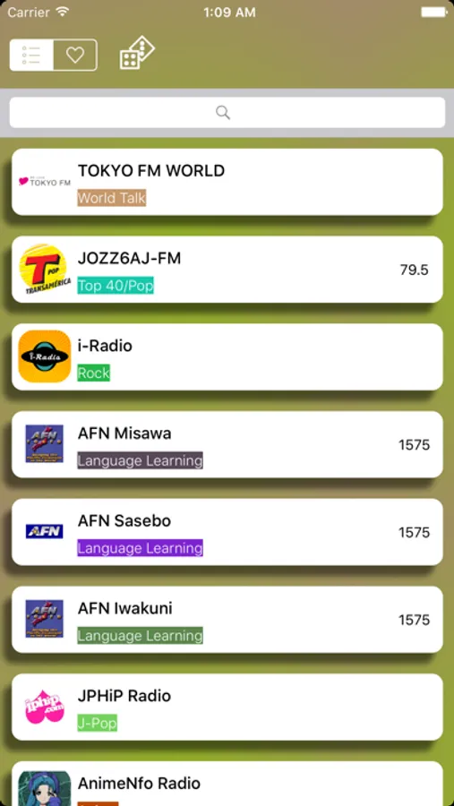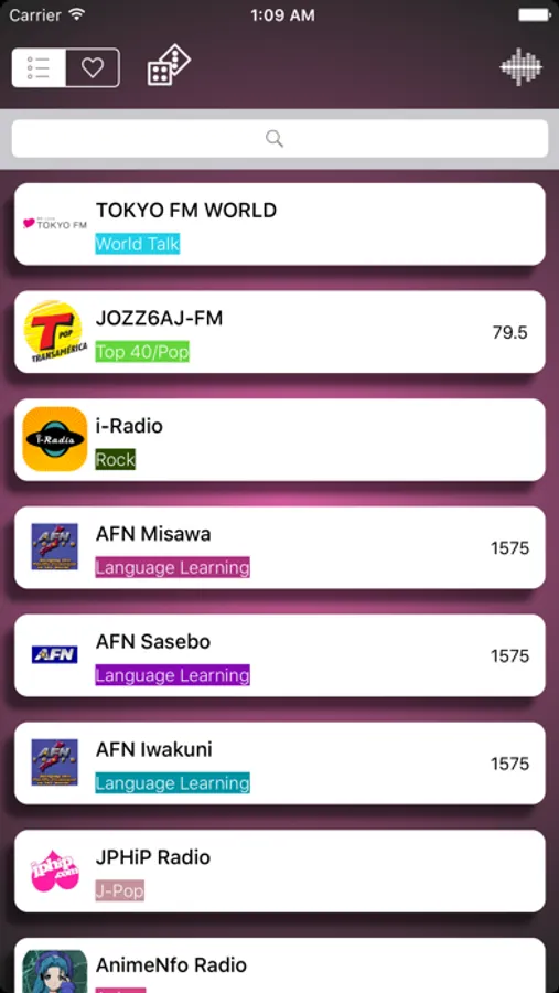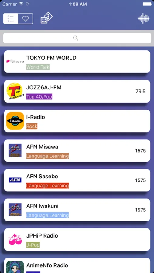 日本国内の 190 以上のラジオ局の放送を楽しもう!:湘南ビーチFM, ウメダFM Be Happy!789 (FMキタ), J-Jams, Japan-a-Radio, Ghost Anime Radio, Ottava, Radio Chopin, FM軽井沢, BAN-BANラジオ, AnimeNfo, Vocaloid Radio, FM西東京 84.2, 京都三条ラジオカフェ, レディオ湘南FM, あづみ野エフエム, CREATIVE FREEDOM radio, Soulful Web Station etc.