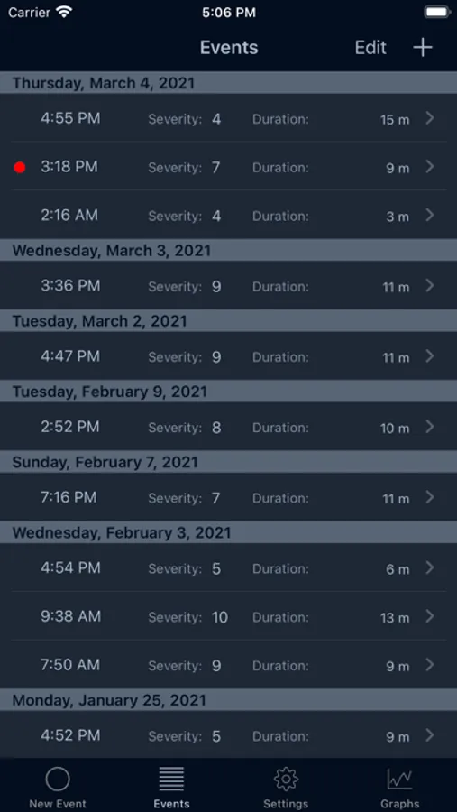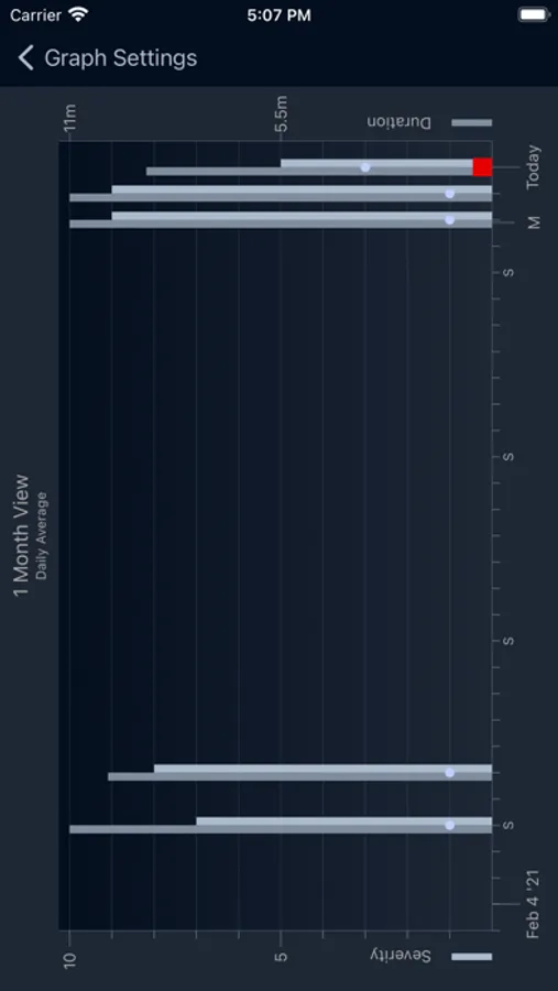 View graphs of headache attacks with duration, severity and quantity.