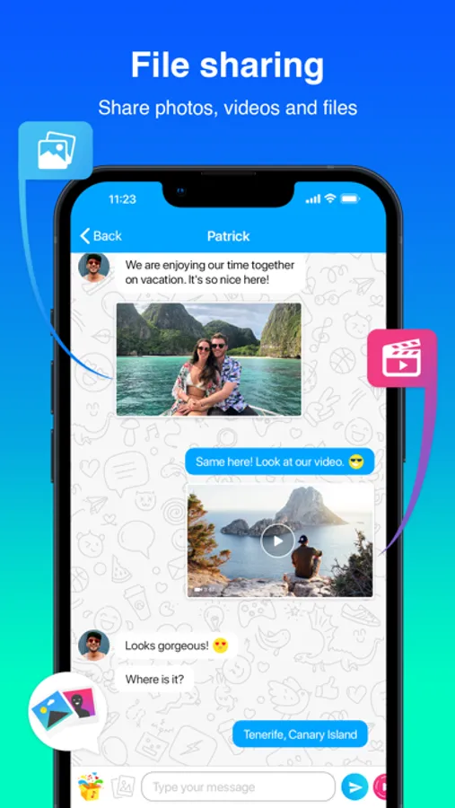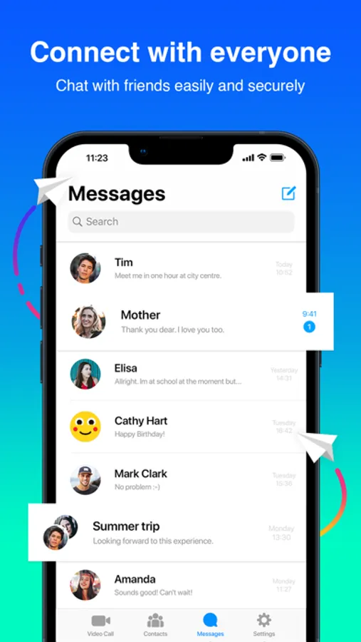 Send text messages, voice messages, video messages with all your friends and family easily, quickly and securely.