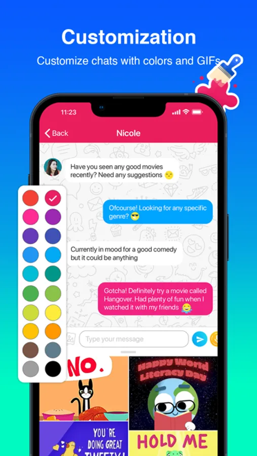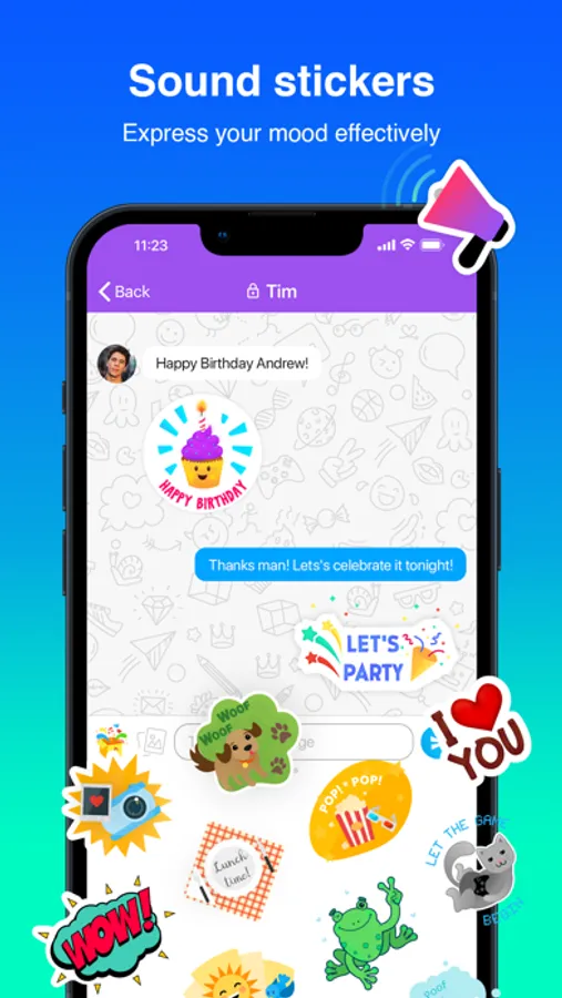 Express more with Sound Stickers or GIF. Send and receive stickers with sound notifications. Surprise your friends and give your messages emotions. It is fun.
