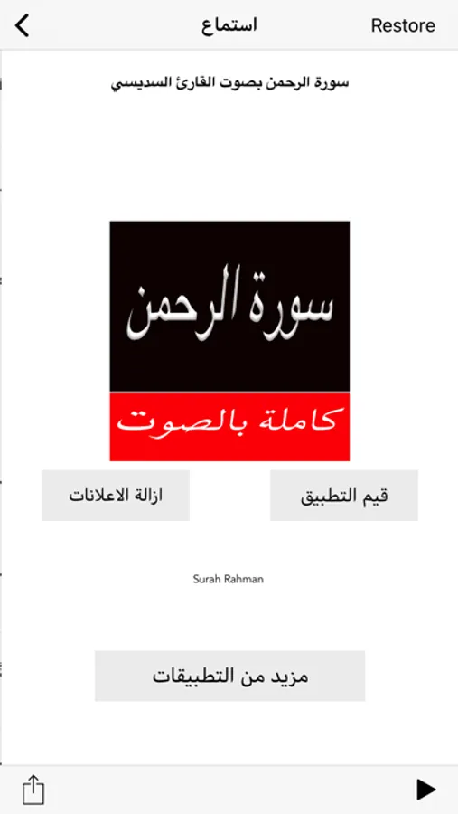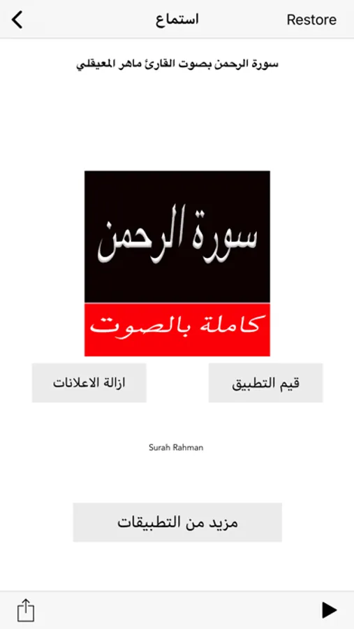 This app is an Islamic application that lets Muslims throughout the world attain enormous blessings of Allah SWT by reciting extraordinary Chapter of the Holy Quran and from Surah Ar-Rahman.