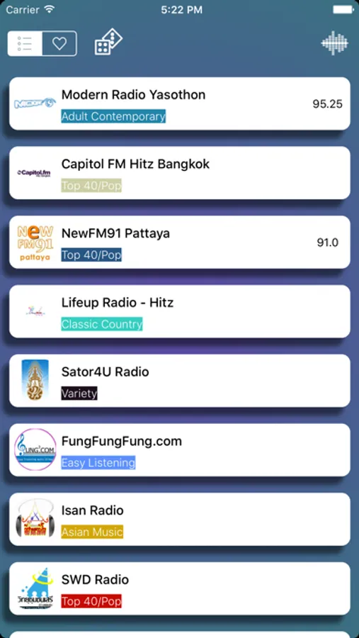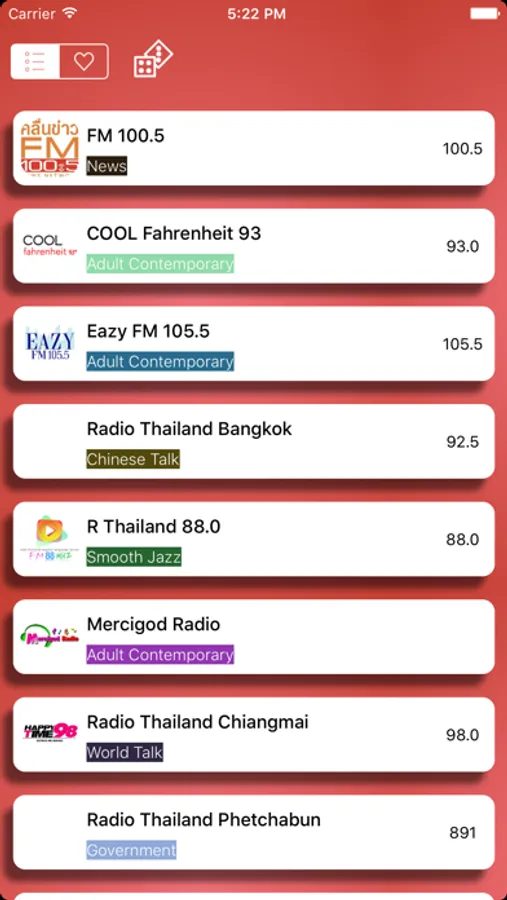 ฟังรายการวิทยุจากสถานีต่างๆ ใน แห่งในประเทศไทย: COOL Fahrenheit 93, เพื่อชีวิต request radio, City Radio Pattaya, Eazy FM 105.5, EFM, SMM Sport Radio 96, Active 99, 95.5 Virgin HITZ, Met 107 FM, 96.5 คลื่นความคิด (Modern Radio), SEED 97.5 FM ...