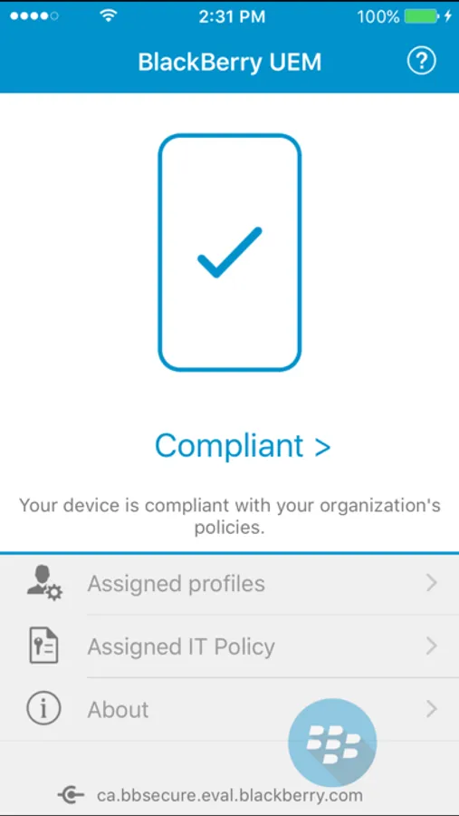 The BlackBerry® UEM Client integrates iOS devices (iPhones and iPads) with your organization’s enterprise mobility management (EMM) software: BlackBerry UEM or BES®12. Once activated, the BlackBerry UEM Client enables: