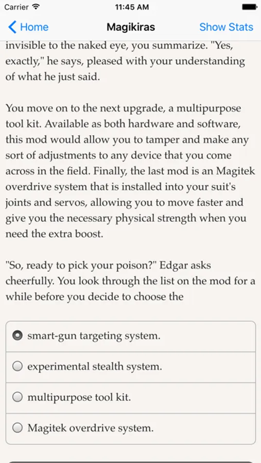 "Magikiras" is a 1,100,000-word interactive novel by Gabriel Chia, where your choices control the story. It's entirely text-based--without graphics or sound effects--and fueled by the vast, unstoppable power of your imagination.