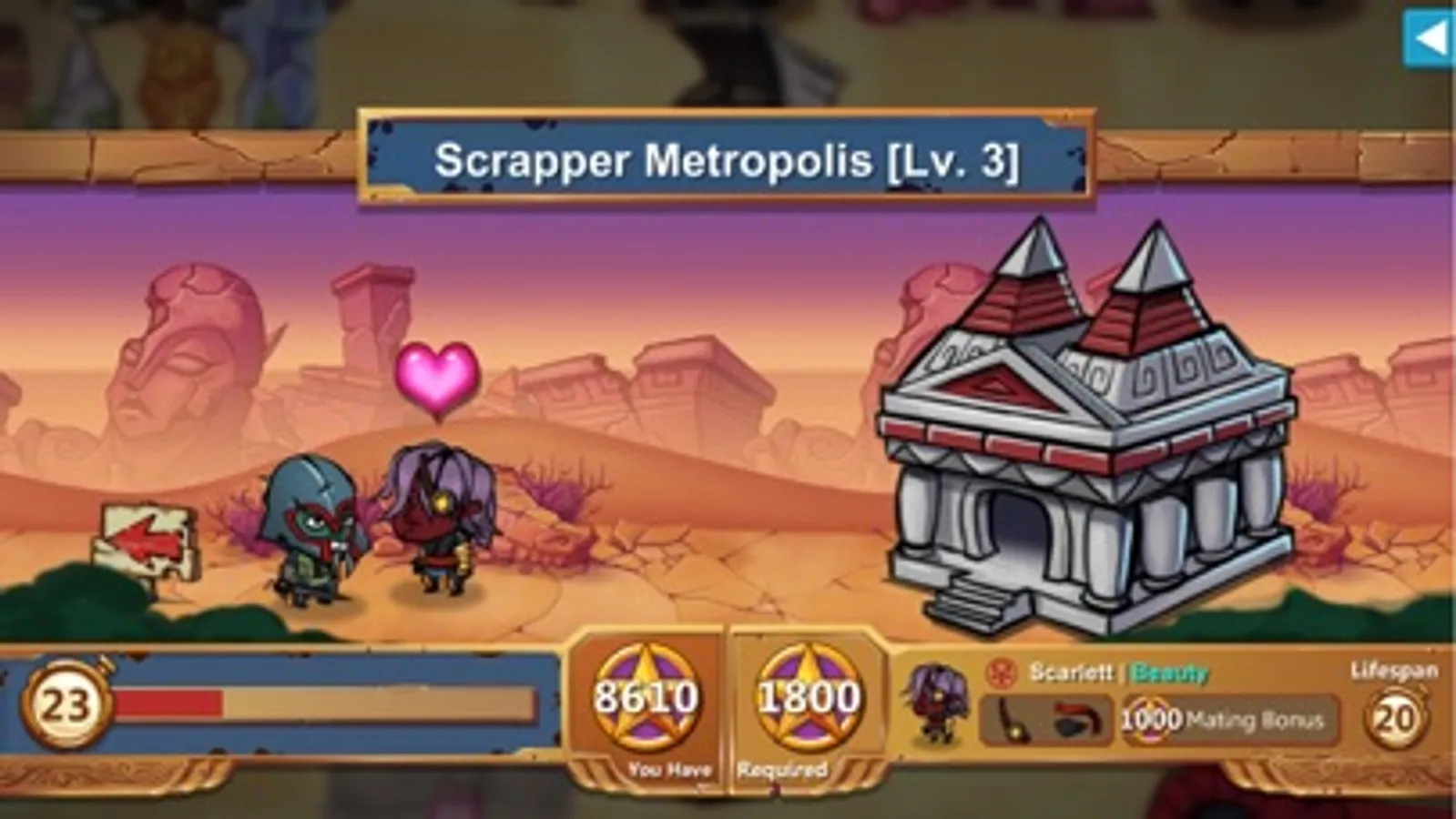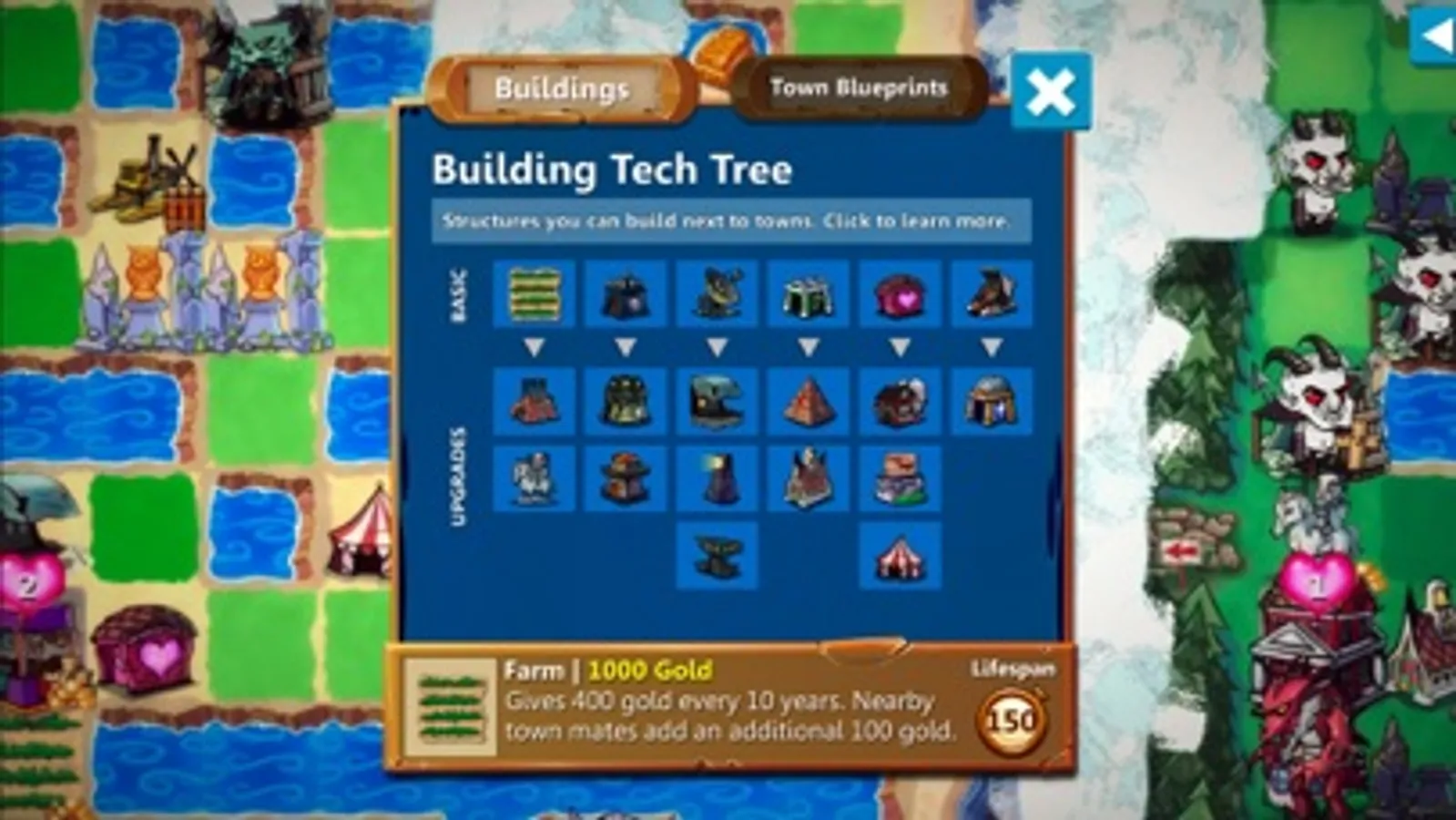 Construct any of 19 legacy lasting buildings next to towns to give future generations useful resources, powerful new abilities, and attract better mates.