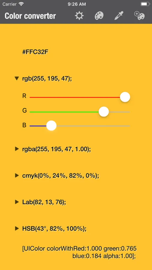 • Convert RGBA colors (Red, Green, Blue, Alpha)