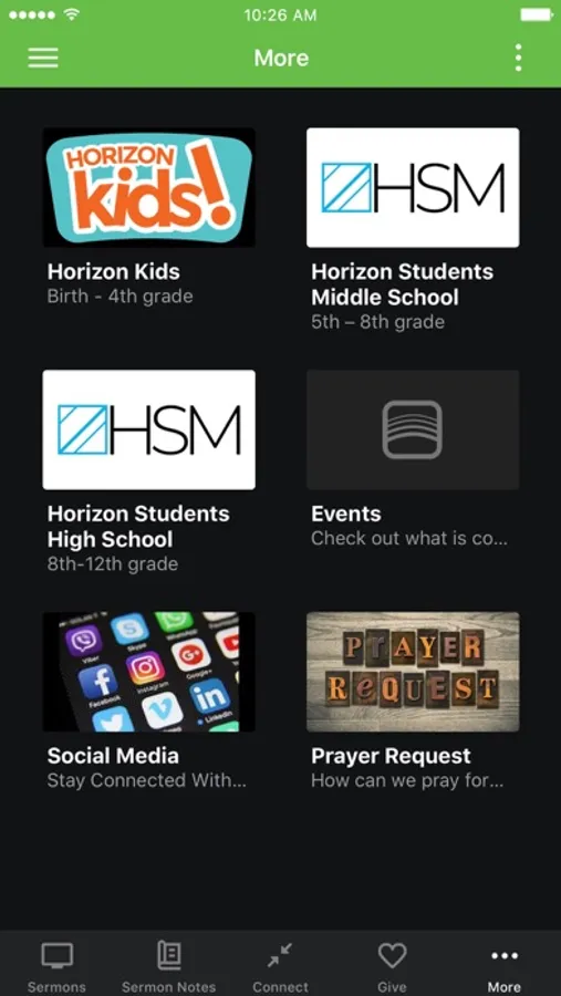 The New Horizon Church app was developed with the Subsplash App Platform.