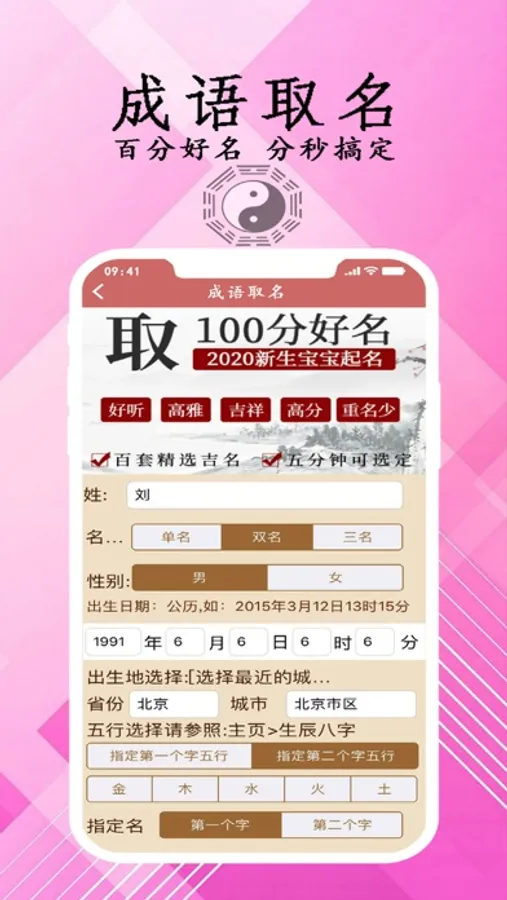 周易生辰八字取名起名是一款不用联网宝宝取名软件,它根据周易理论,应用五行、八字、五格三才,剖象,灵动等因素为您宝宝取名,同时它也是支持诗词取名的宝宝取名软件。