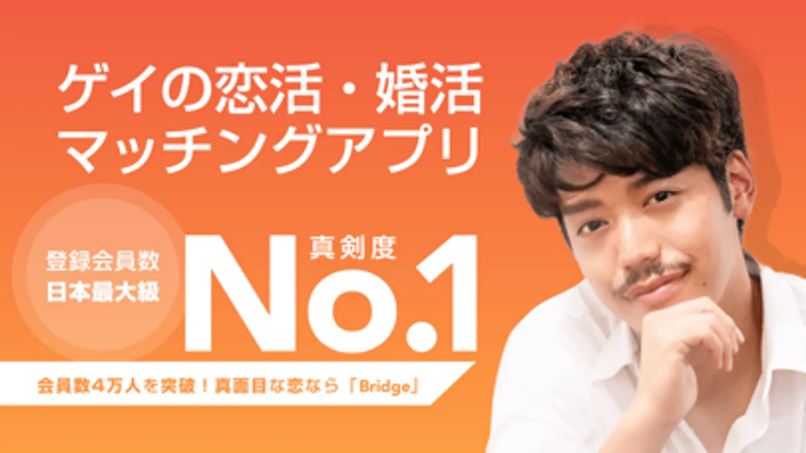 従来のゲイアプリではなく、真面目な婚活・恋活マッチングアプリとして運営し、インターネットでのゲイの出会いのイメージを変えてきたのがBridge(ブリッジ)。