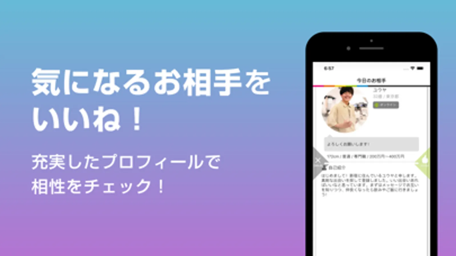 4.お互いに「いいね!」でマッチング!メッセージを送って、仲良くなりましょう!