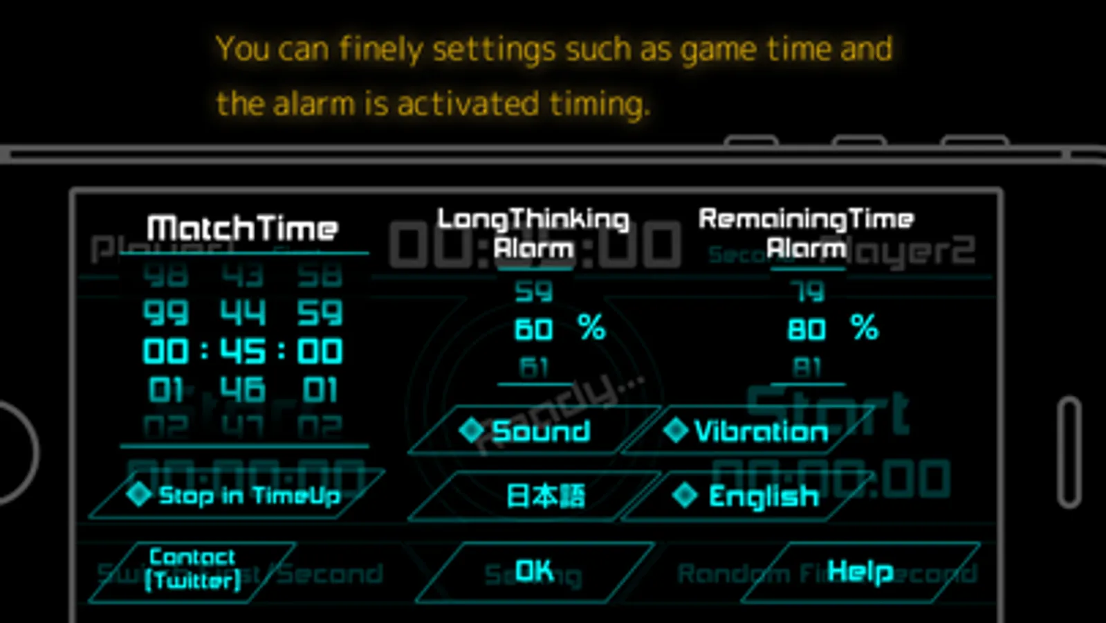 When the usage time is longer than the opponent and, to alert the alarm when the match remaining time is low.