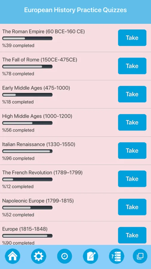 - In practice quiz, you can play quiz by selecting any European history concept.
