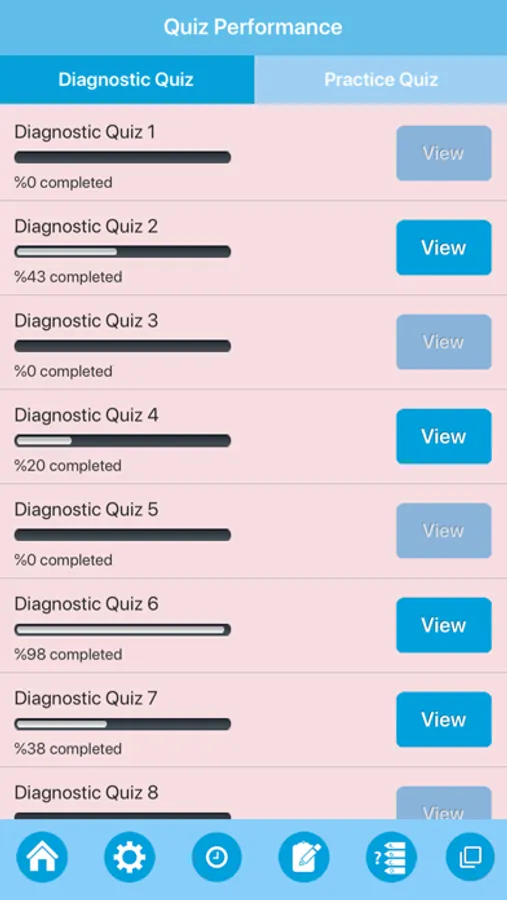 - There are 2 quiz mode. Diagnostic Quiz and Practice Quiz