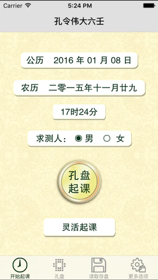 《孔令伟大六壬》是最专业最精准的大六壬起盘软件,由著名的易学实战专家孔令伟先生开发。只需输入年、月、日、时即可起盘。还可以根据月将、时辰、日期灵活起课。