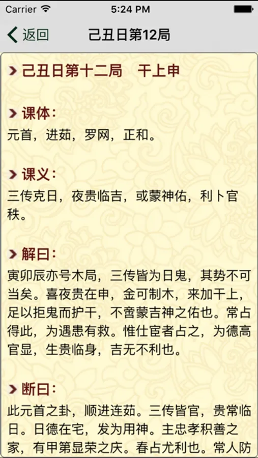 3.提供最专业、最全面的课体分析,包括课体名称、课义、各种占项的解析、《毕法赋》《大六壬指南》等经典著作对课体的解释等。
