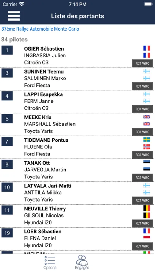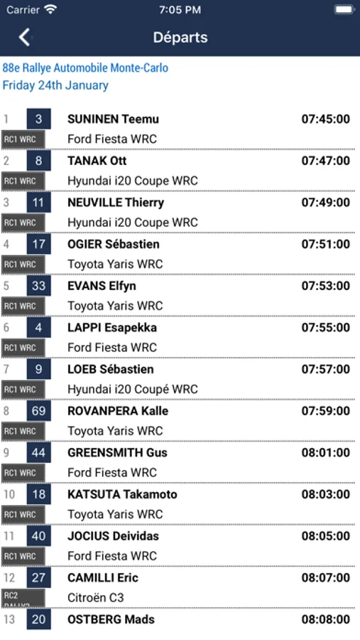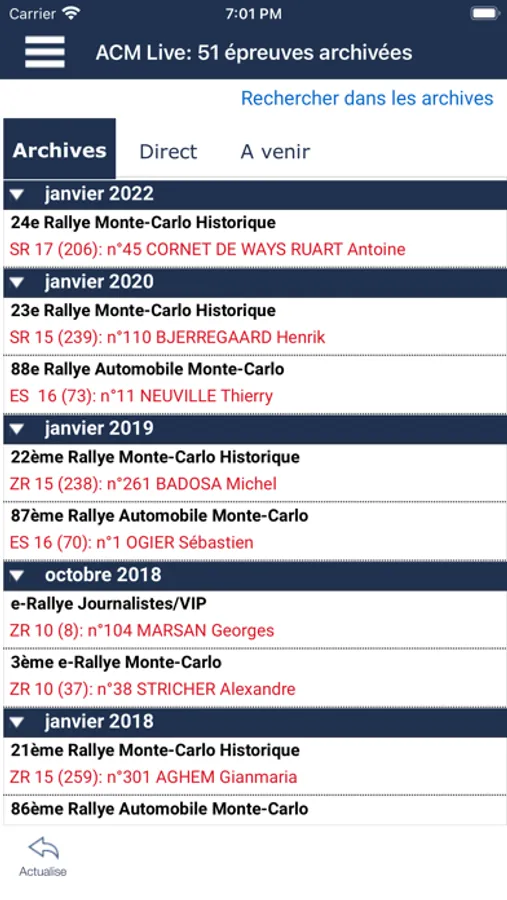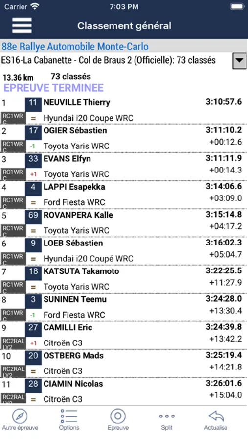 Résultats des rallyes Monte-Carlo WRC et Historique.