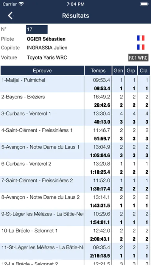 Classements, temps splits, pénalités, abandons, engagés, listes de départs, cartes des ES, historique des pilotes, fil d'actualité, tableau d'affichage.
