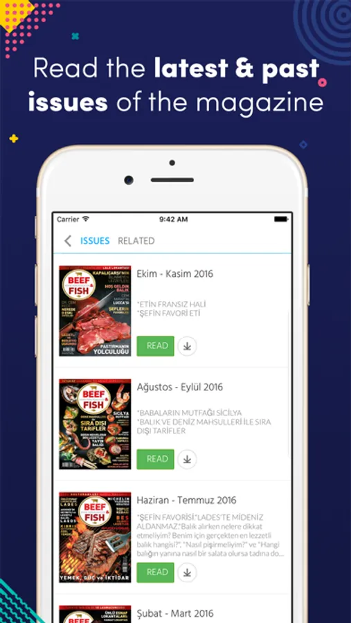Ayrıca ünlü şeflerden sadece et ve balık tarifleri… Et ve balık içeren mezeler… Türkiye’nin lezzet durakları; et lokantaları, balık lokantaları ve sokak lezzetleri… Dünyadan değişik lezzetler, tarifler ve mekanlar…