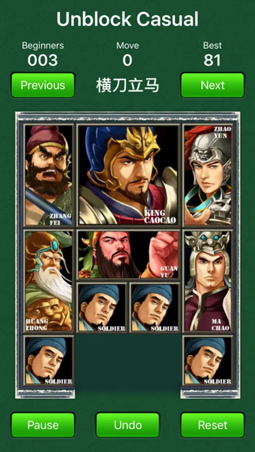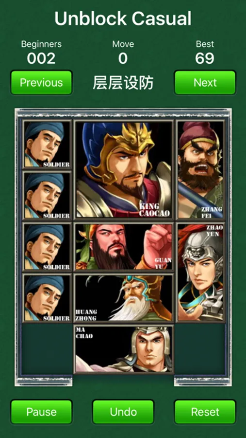 关羽与曹操当然是解开这一游戏的关键。四个刘备军兵是最灵活的,也最容易对付,如何发挥他们的作用也要充分考虑。