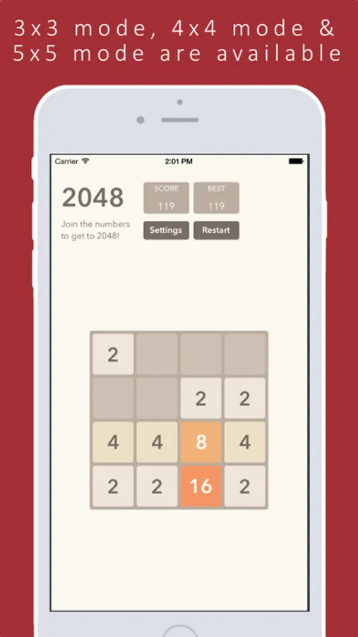 2048 now too easy for you? Try 2048 5x5 with more board space. You can make thousands times more than 2048 tiles. Also 3x3 & of course 4x4 modes are available.