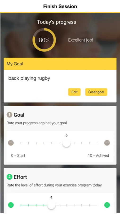 The Personal Health app is innovative and visually engaging. You can track your progress with interactive rating scales and charts for personal goal-setting, exercise completion, exercise effort and pain. You will feel actively informed and in greater control of your recovery.