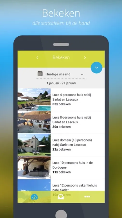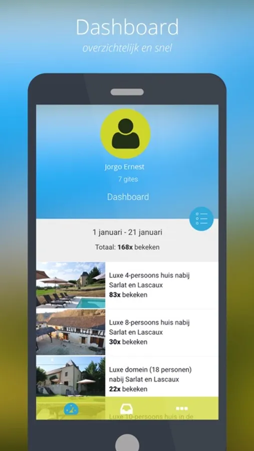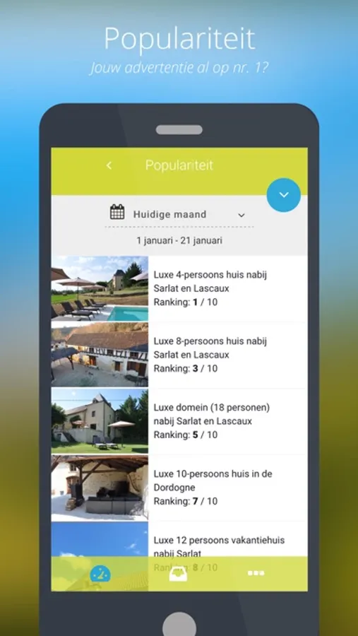 Met de Topgites-app is het voor u als adverteerder mogelijk om te allen tijde op de hoogte te blijven van acties die naar aanleiding van uw advertentie worden uitgevoerd. Denk hierbij aan het gemakkelijk ontvangen van berichtnotificaties en het kunnen bekijken van bezoekersstatistieken. Door middel van deze statistieken wordt het mogelijk om in te zien hoe vaak er interesse was in uw aanbod en hoe vaak er daadwerkelijk over is gegaan tot huren.